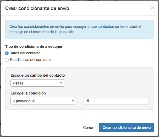 Los condicionantes de envío para las campañas inteligentes pueden ser de dos tipos: