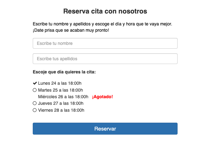 Utiliza el elemento de tipo 'Reservas' para que los usuarios de tus formularios escojan una opción de una lista ordenada verticalmente, con la condición de que solo podrán escoger la opción deseada si hay disponibilidad para esa opción.