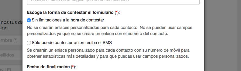 Esta opción sólo funcionará con formularios de tipo 'Solo puede contestar quien haya recibido el Formulario'.