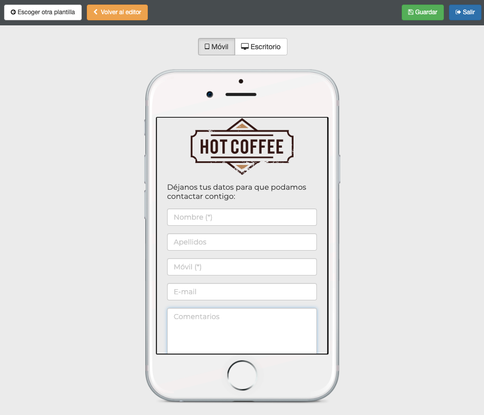 Cuando creas un nuevo Formulario o bien modificas uno creado, puedes ver una previsualización del formulario que estás creando/modificando tanto en dispositivos móviles como en dispositivos de escritorio.